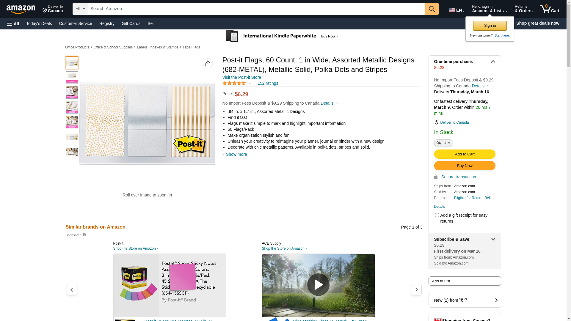 Post-it Printed Flags, Assorted Metallic Designs, 9/10" x 1 7/10", 60 Flags/PK | Grand & Toy