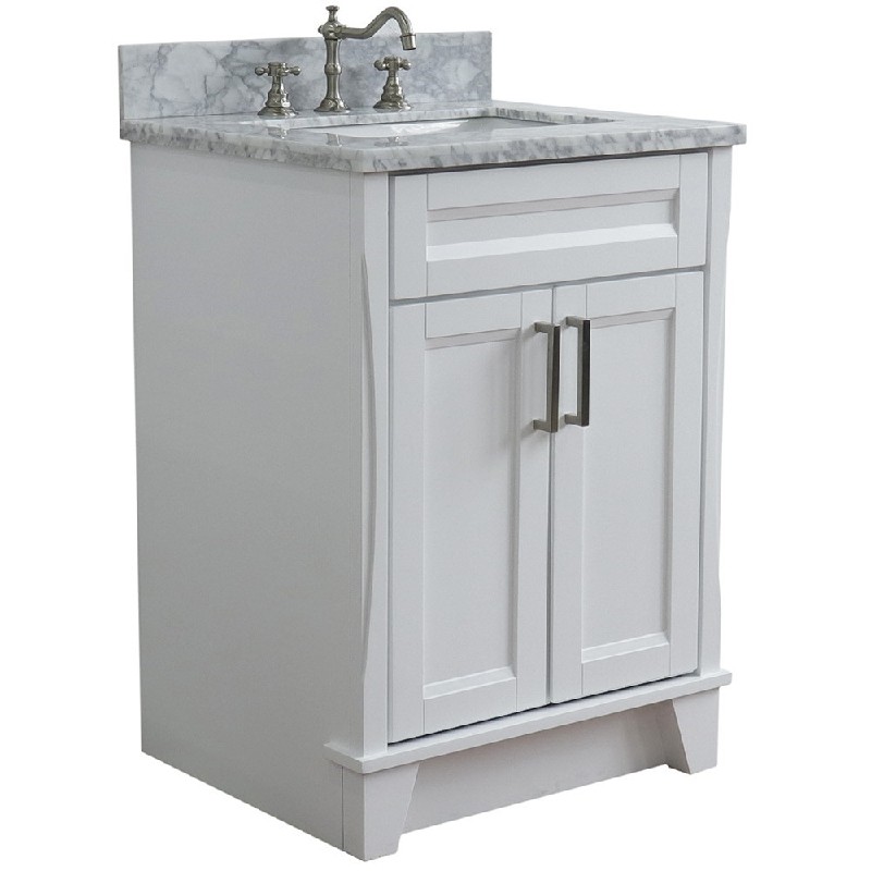 BELLATERRA 400700-25-WH-WMR TERNI 25 INCH SINGLE SINK VANITY WITH WHITE CARRARA MARBLE TOP AND RECTANGULAR BASIN, WHITE