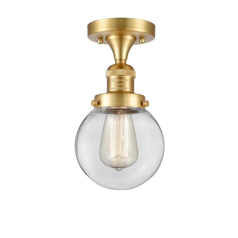 INNOVATIONS LIGHTING 517-1CH-SG-G202-6-LED FRANKLIN RESTORATION BEACON 6 INCH ONE LIGHT CLEAR GLASS SEMI-FLUSH MOUNT...