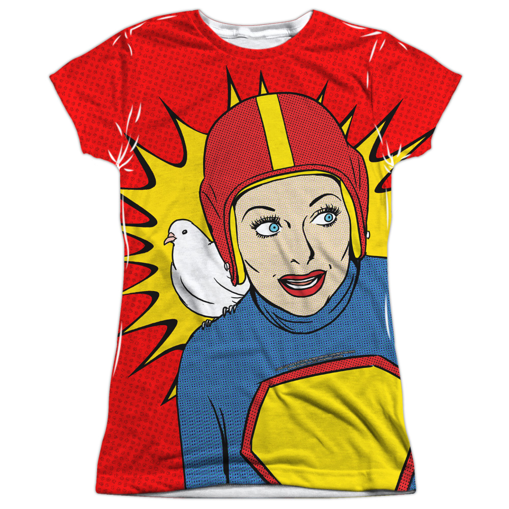Trevco LB290-JSPP-2 I Love Lucy & Super Lucy Junior Polyster Crew Neck Cap Short Sleeve T-Shirt, White - Medium