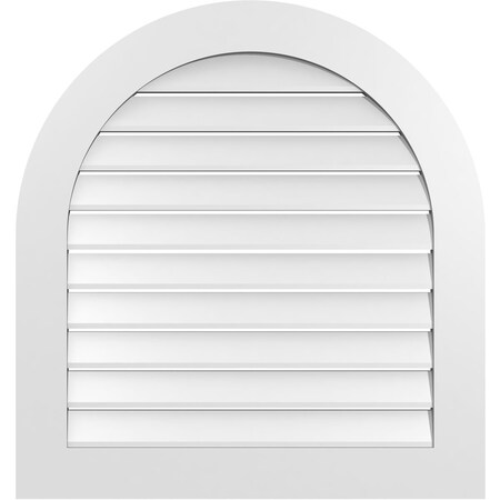 Ekena Millwork GVPRT32X3401SF Round Top Surface Mount PVC Gable Vent, 32"W x 34"H, Factory Primed White