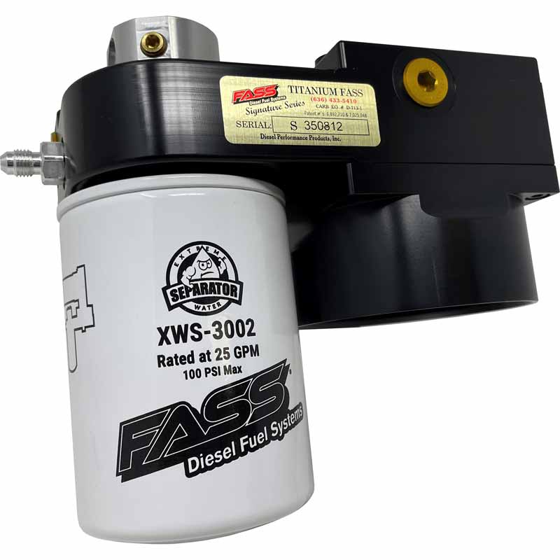 FASS Fuel Systems Drop-In Series Diesel Fuel System fits GM trucks (DIFSL5P1001) Fits: 2017-2019 Crew Cab Short Bed L5P Duramax Fits: 2017-2023 Crew Cab Long Bed L5P Duramax Part No: DIFSL5P1001 The FASS Drop-In Series Diesel Fuel System was engineered by FASS to be the most effective filtration solution for the L5P Duramax. Backed by our limited lifetime warranty, the Drop-In Series Fuel System protects your L5P Duramax from the issues caused by fuel contamination. Without proper fuel filtration, modern diesel injection systems are prone to excessive wear, which can cost THOUSANDS! By removing over 99% of the water from your diesel fuel, along with entrained air and debris down to 2 Microns, the Drop-In Series System protects the L5P’s injection system from premature failure. Additionally, by eliminating the contaminants mentioned above, our Drop-In Series System for the L5P Duramax optimizes MPG (results will vary), restores horsepower, and sharpens throttle response. And if reliability, optimized MPG, restored horsepower, and a sharper throttle response isn’t enough, this system can be installed in an hour or less! This is a true plug-and-play system, requiring no cutting, wiring, or additional modifications. Better still, this system requires ZERO tuning changes! Whether your L5P is stock or modified, our Drop-In Series Systems will not require adjusting tunes or clearing any codes. Our industry-leading water removal capabilities (3rd-party proven to exceed 99%) are reinforced by the unique design of our Extreme Water Separator (XWS). If our XWS reaches capacity, it acts as a dam, shutting down your truck and preventing major destruction of fuel system components.