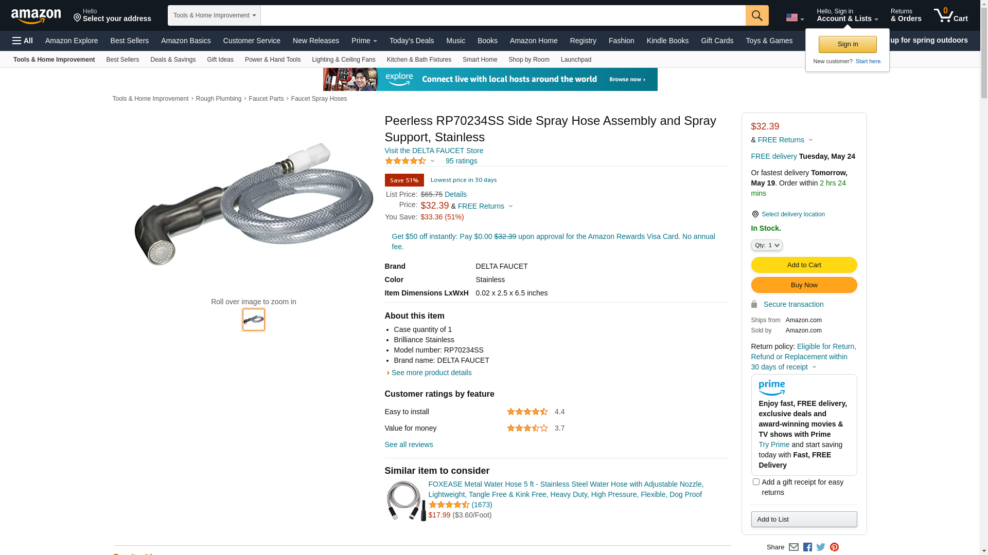 Order this bargain deal, the PEERLESS RP70234SS PART SIDE SPRAY HOSE ASSEMBLY KIT STAINLESS online with PlumbersStock - the DIY home improvement leaders.