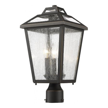 This 3 light Outdoor Post Mount Fixture from the Bayland collection by Z-Lite will enhance your home with a perfect mix of form and function. The features include a Oil Rubbed Bronze finish applied by experts. Product Features Include: Brand: Z-Lite, Collection: Bayland, SKU: 539PHMR-ORB, UPC: 685659045499, Category: Post Light or Accessories, Finish: Oil Rubbed Bronze, Shade: Clear Seedy Glass, Material: Aluminum, Length: 9.00 in., Width: 9.00 in., Height: 17.50 in., Extension/Depth: 9.00 in., Backplate/Canopy Width: 0.00 in., Backplate/Canopy Length: 0.00 in., Weight: 6.17 lb., Bulbs Included: No, Primary Bulb(s): 3 x 60.00 watts Candelabra Candelabra, Safety Rating: CUL/cETLu Wet