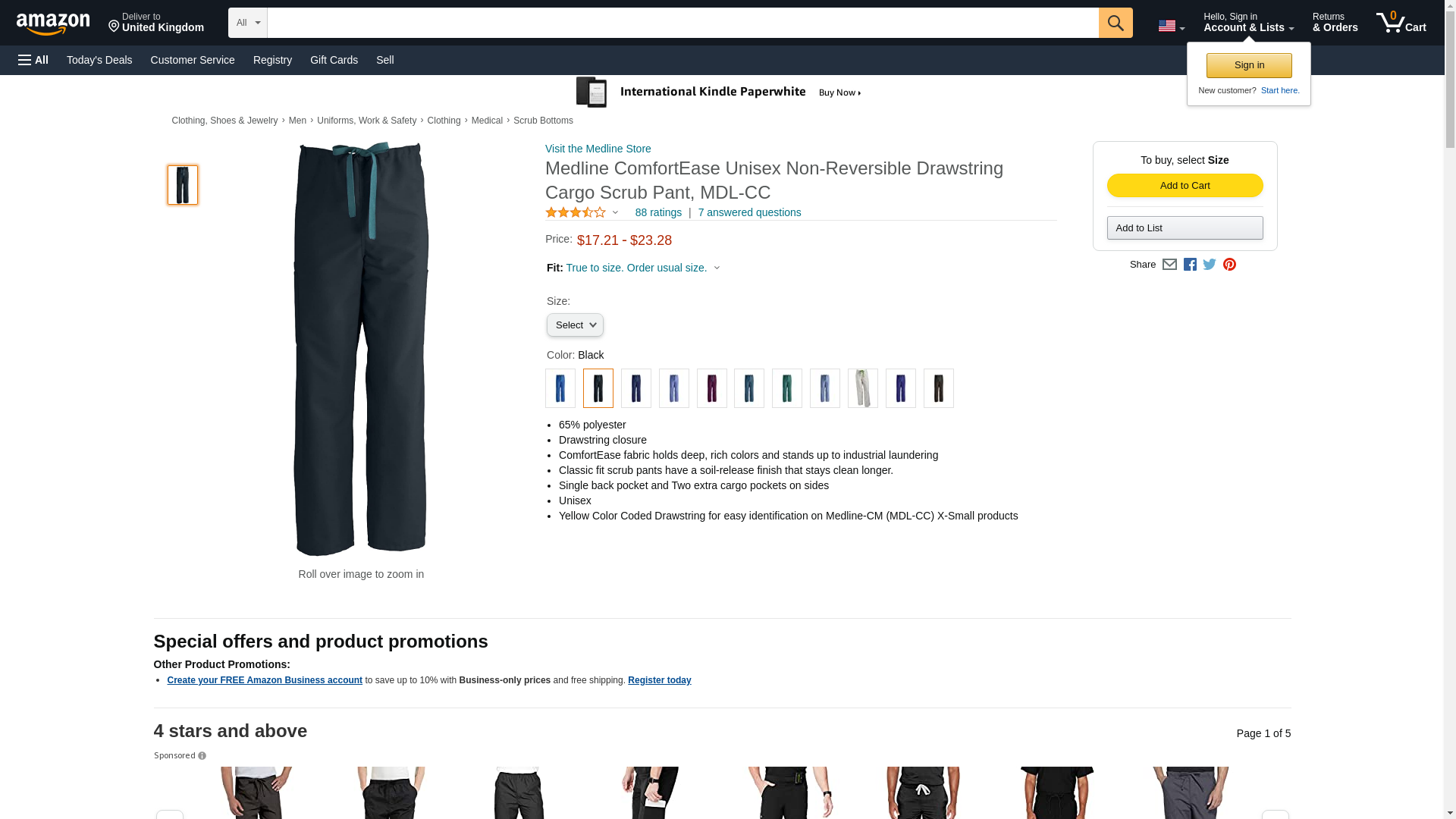 Medline 950DKWXS-CM ComfortEase Cargo Scrub Pants with Drawstring, Unisex, Black