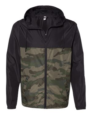 Independent Trading B21876616 Water-Resistant Lightweight Windbreaker, Black & Forest Camo - Extra Large