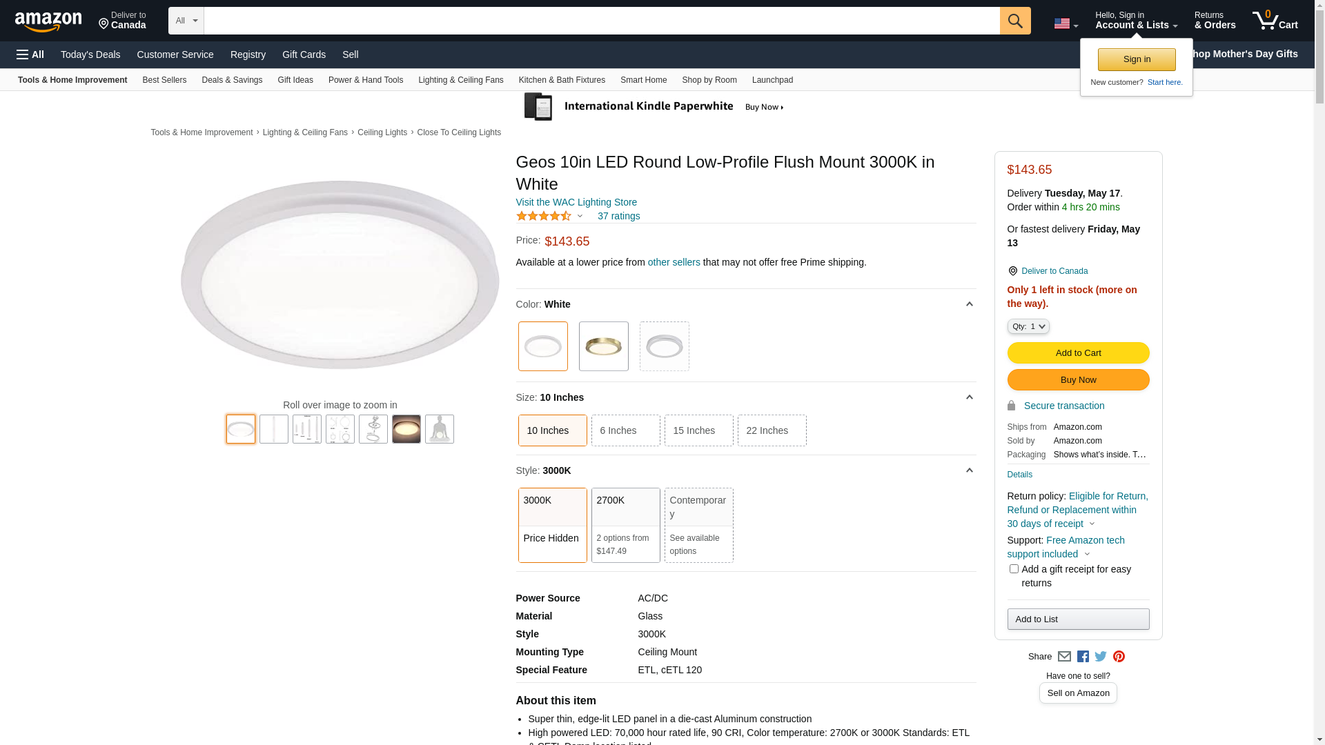![]() gordonelectricsupply.com | FM-4610-30-WT | 1 | WAC LTG Orders over $150 Usually Ship Next Day Otherwise 5-7 days | 1 | 1 @ $169.00 |