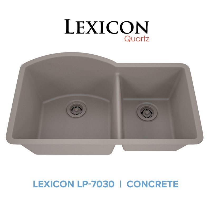 LEXICON QUARTZ LP-7030-C 32 INCH 70/30 DOUBLE OFFSET BOWL KITCHEN SINK, CONCRETE