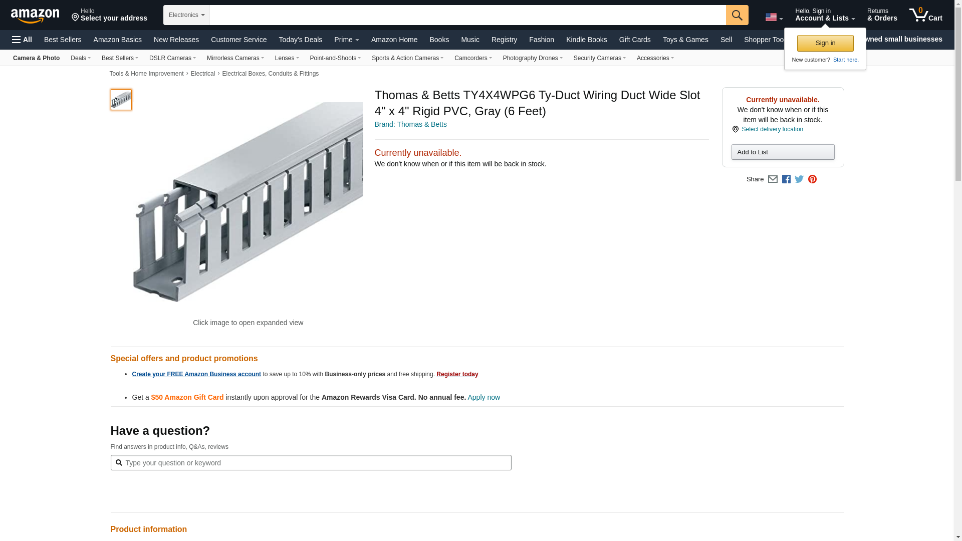 Thomas & Betts TY4X4WPG6 Duct, Wide Slot, 4" x 4", Gray (Pack of 30)