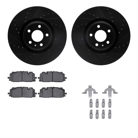 8512-73083, Rotors-Drilled and Slotted-Black w/ 5000 Advanced Brake Pads incl. Hardware, Zinc Coated