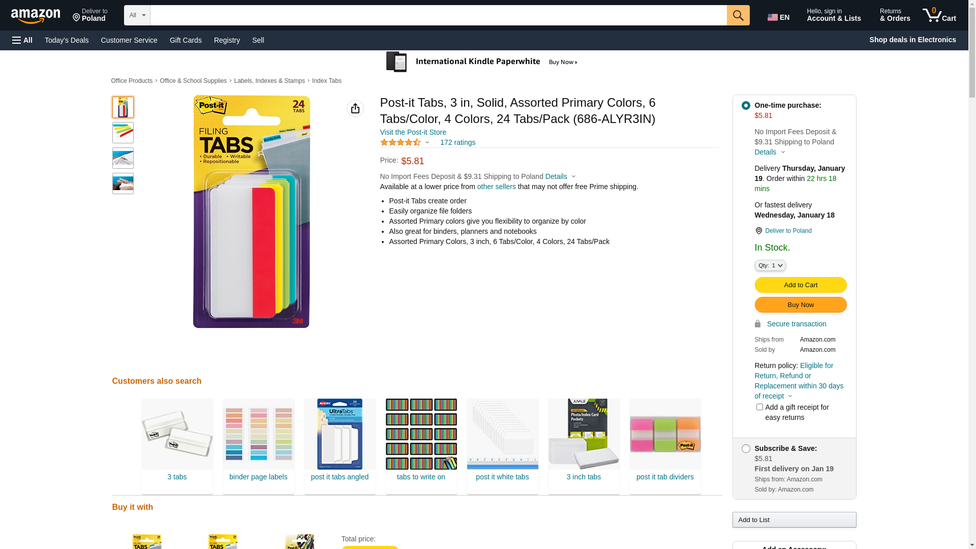 Post-it Tabs, 3-Inch Solid, Assorted Primary Colors, 6-Tabs/Color, 4 Colors, 24-Tabs/Pack. Post-it(R) Tabs create ord...