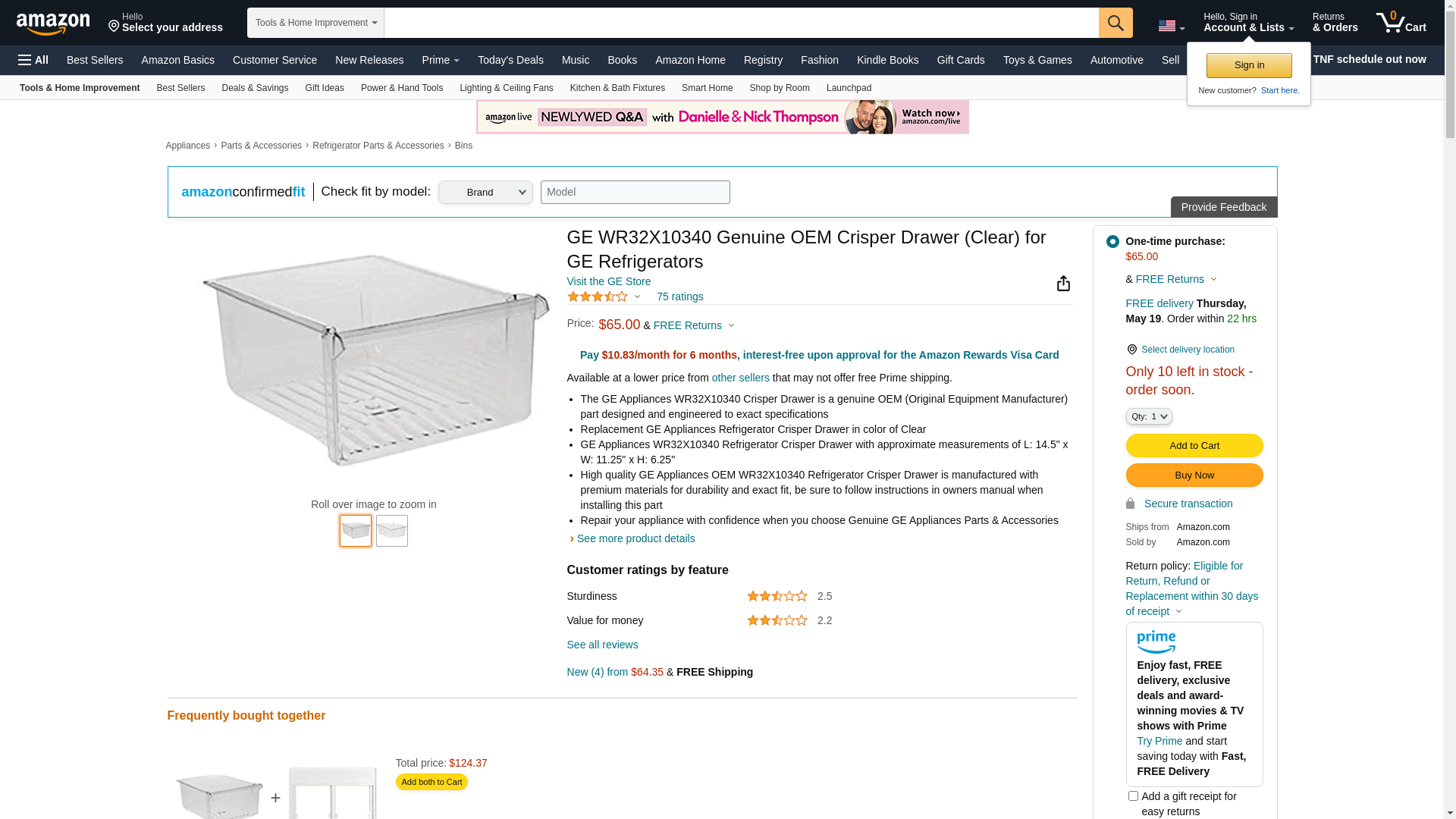 ![]() midwestapplianceparts.com | WR32X10340-GEH-P | 1 | -2 | 1 | 1 @ $83.23 |
