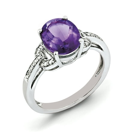 Sterling Silver Rhodium-plated Diamond & Oval Amethyst Ring