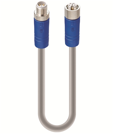 Lumberg Automation RST 5L-RKT 5L-949/5 M M12 power male/female straight molded cable has 5 pins. Rated voltage 63V. 5 meters of gray PUR cable. L coding