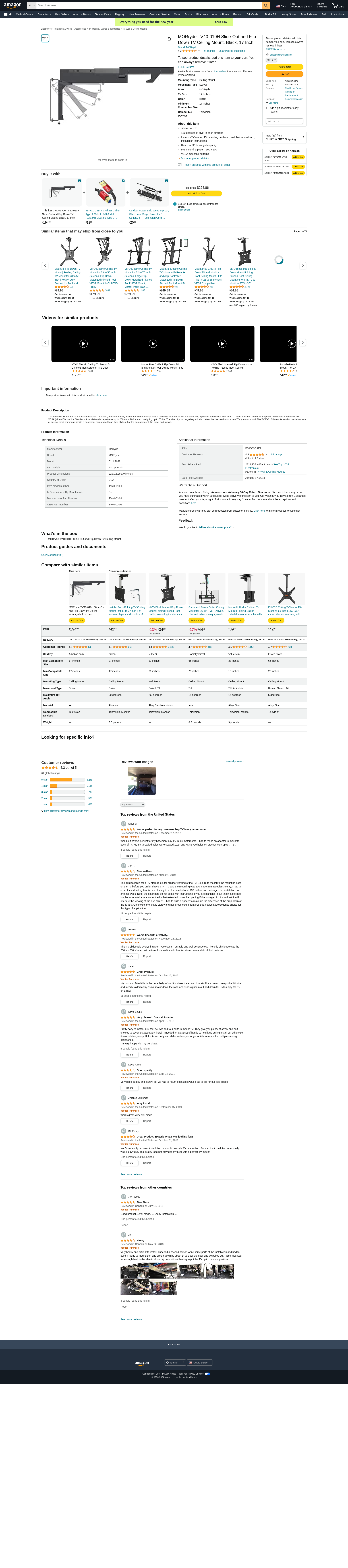 MOR/ryde TV40-010H RV Trailer Camper Electronics Tv Ceil Mount W/17 Slide/Flip Down