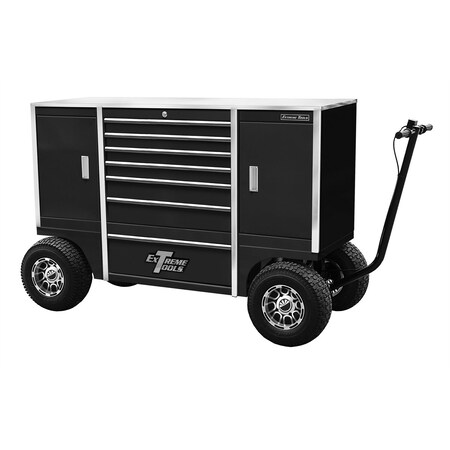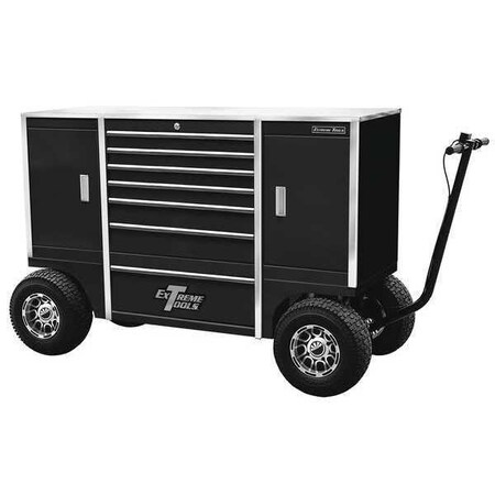 Extreme Tools TXPIT7009BK Tx Series 7-Drawer and 2-Compartment Pit Box with Ball Bearing Slides, 70-Inch, Black High Gloss Powder Coat Finish