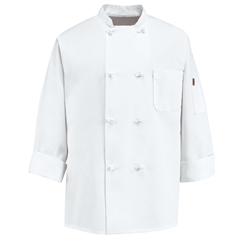 Chef Designs Eight Pearl Button Chef Coat with Thermometer Pocket - Chef Designs 0414WH-RG-M EA - Betty Mills