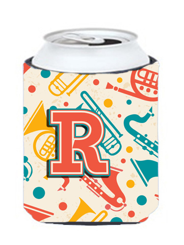 Carolines Treasures CJ2001-RCC Letter R Retro Teal Orange Musical Instruments Initial Can & Bottle Hugger