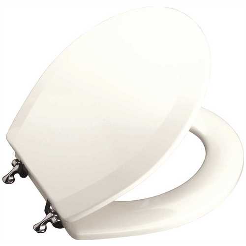 KOHLER K-4726-T-0 Triko Round-front Molded-Wood Toilet Seat with Polished Chrome Hinges, White