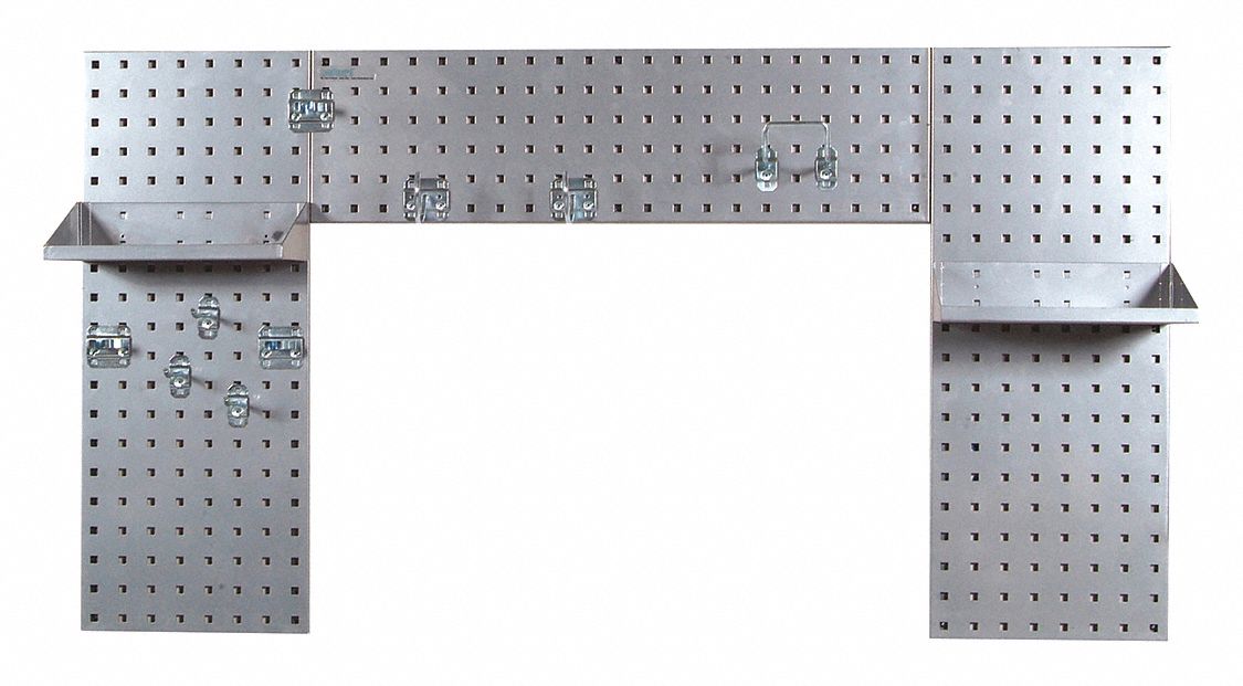 PEGBOARD STRIP KIT, 40 LB CAPACITY, 9 HOOKS, SILVER, 55 1/2 X 30 X 9/62 IN, STEEL