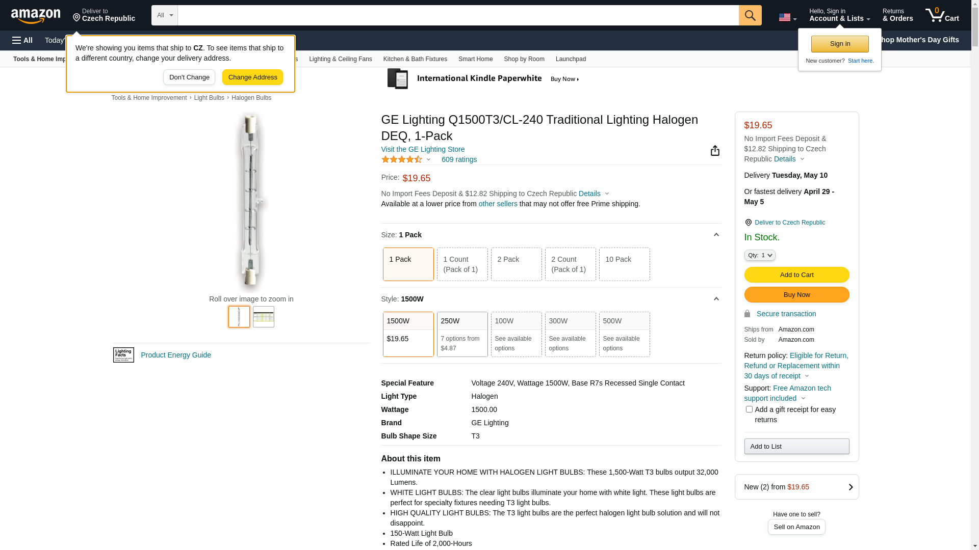 GE Halogen Light Bulb, T3 Light Bulb, 1500 Watt (1 Pack)