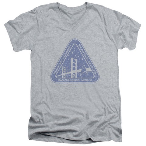 Trevco Star Trek-Distressed Logo - Short Sleeve Adult 30-1 V-Neck Tee - Heather, Small
