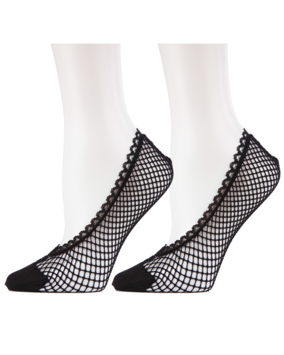 Memoi MWF-000050-96010-OS Womens Knit Net Fishnet Sock Liner Sockss , Black & Black - One size - Pack of 2
