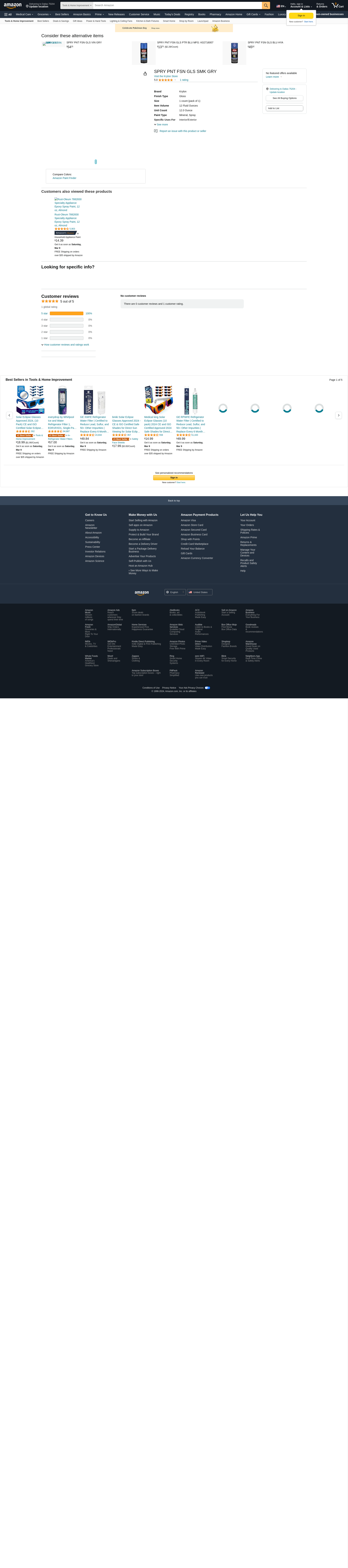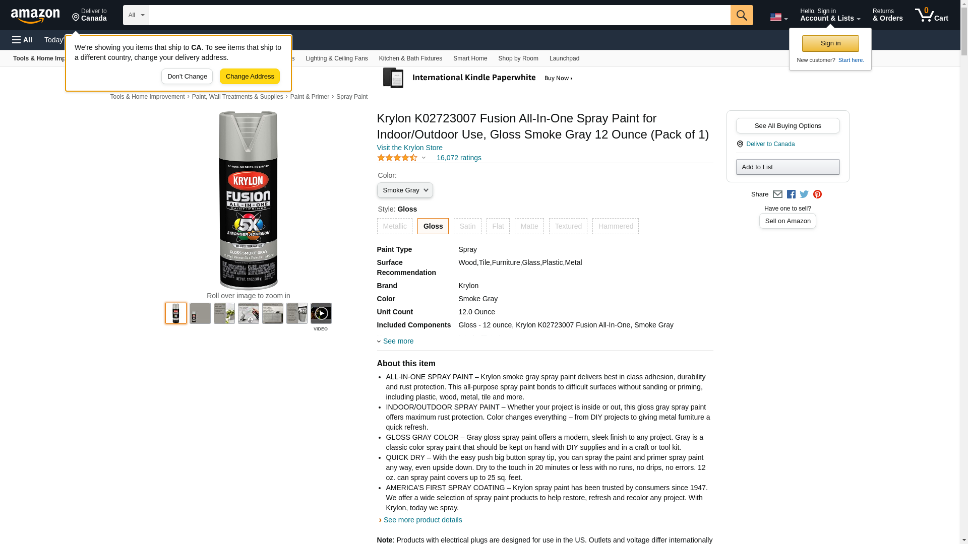 Krylon Spray Paint,Smoke Gray,Gloss,12 oz. K02723007 ZO-G4236484 - SIM Supply