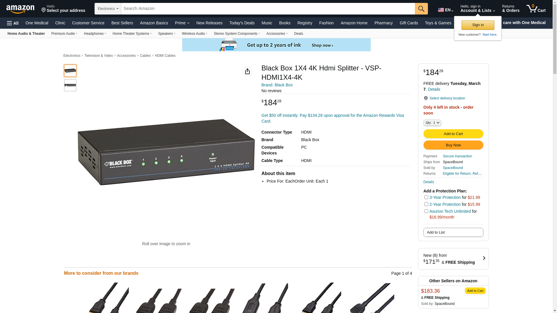 ![]() Megadepot | VSP-HDMI1X4-4K | 1 | 1 | 1 @ $189.20 | |
