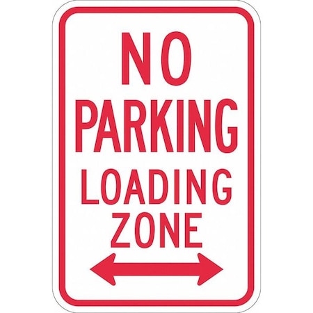 No Parking Loading Zone Double Arrow Parking Sign, Height 18 in, Width 12 in, Sign Material Aluminum, Sign Mounting Style Mounting Holes, Printed Language English, Sign Shape Vertical Rectangle