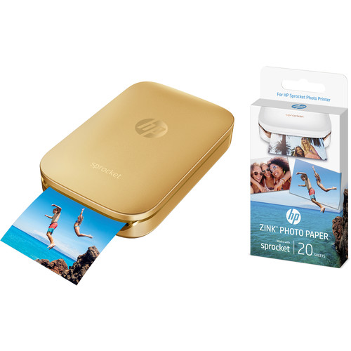 HP Sprocket Portable Photo Printer – Print Social Media Photos on 2x3 Sticky-Backed Paper – Gold (Z3Z94A)