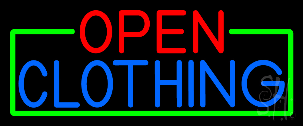 The Sign Store N105-16610 10 x 24 in. Open Clothing with Green Border Neon Sign - Red, Blue & Green