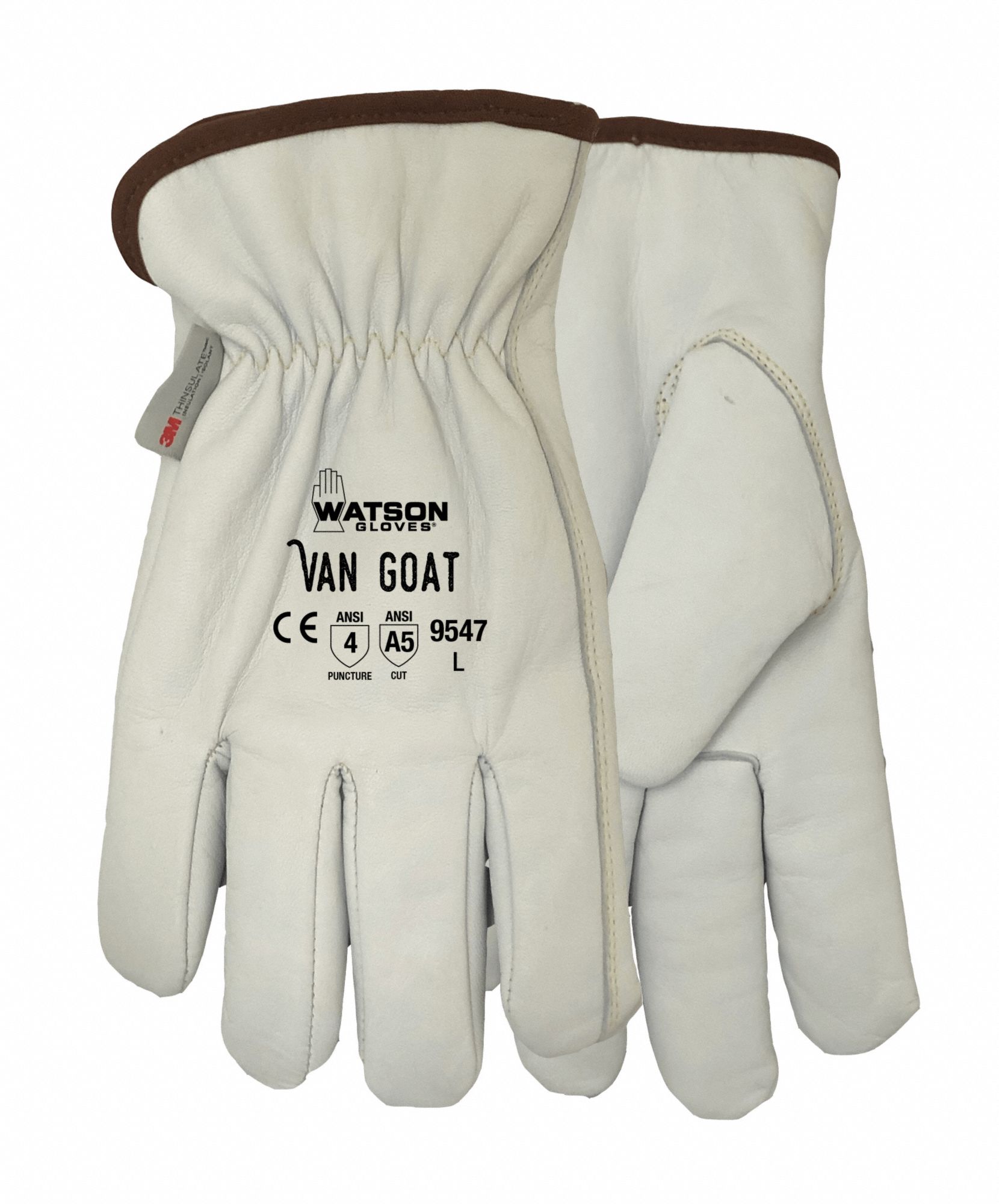 DRIVER'S GLOVES, ELASTIC CUFF, CUT-RESISTANT, XL/SZ 10, WHITE/BEIGE, GOATSKIN/THINSULATE, PR