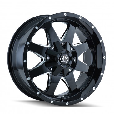 MAYHEM TANK (8040) BLACK/MILLED SPOKES: 18x9 Wheel Size; 5-114.3/5-127 Lug Pattern, 87mm Bore, 12mm Offset.