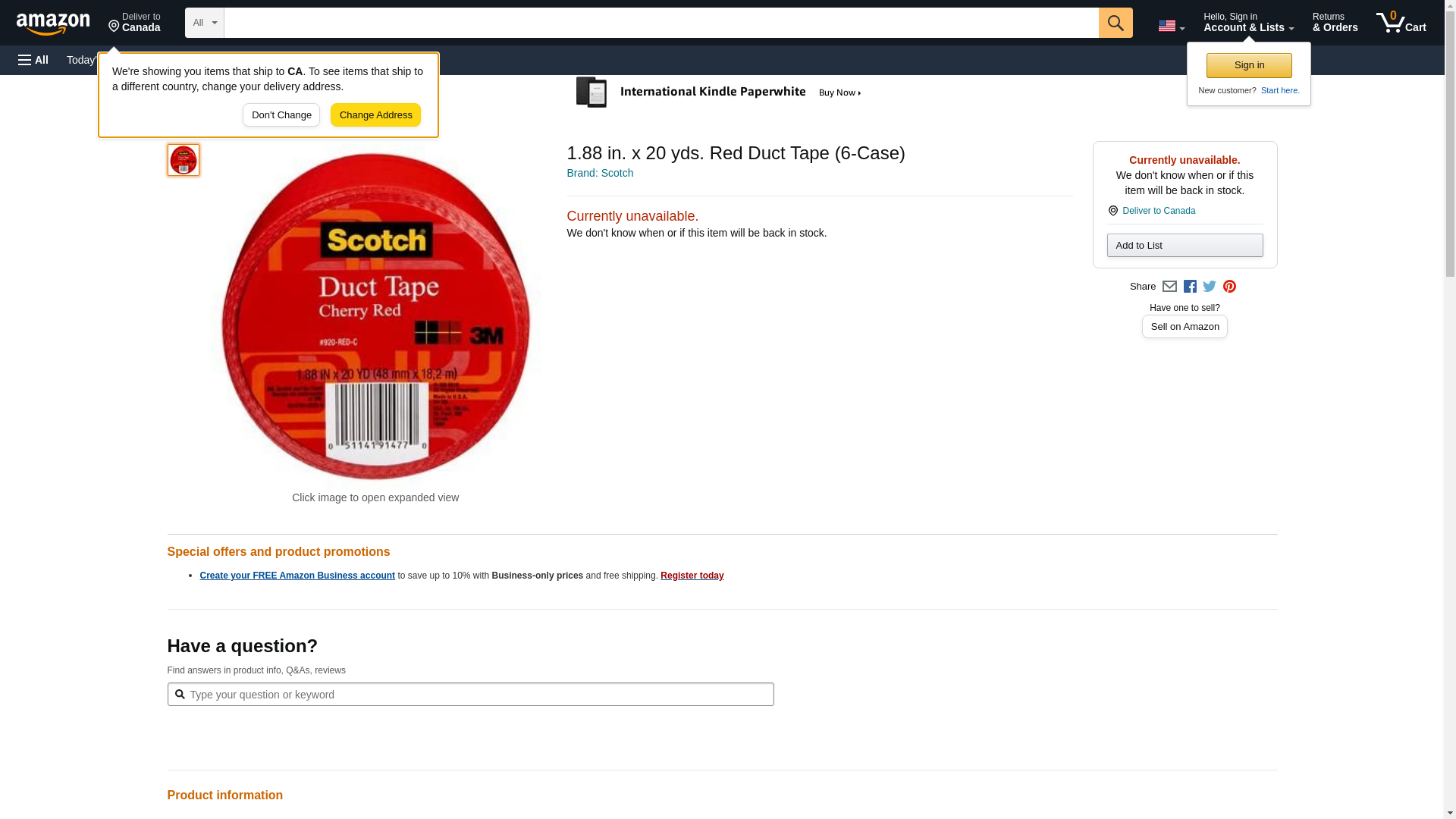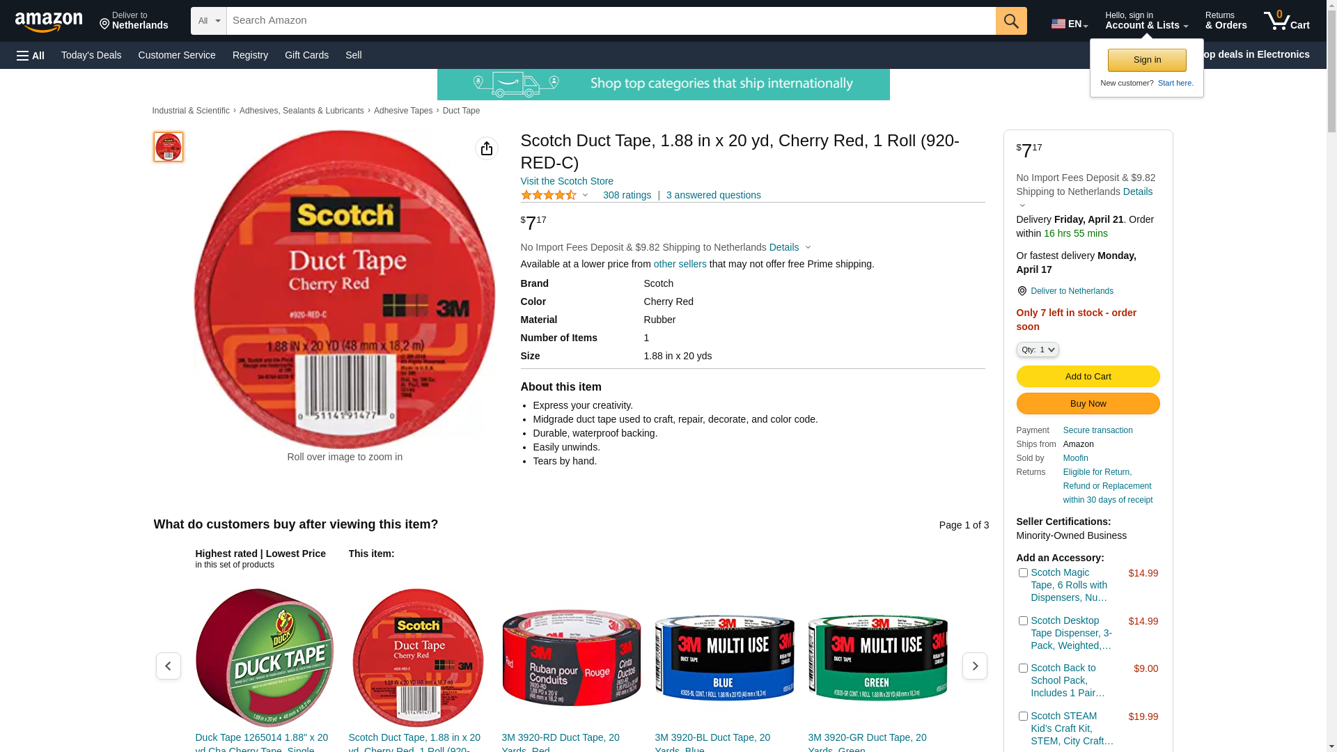 Scotch Duct Tape, 1.88 in x 20 yd, Cherry Red, 1 Roll (920-RED-C)