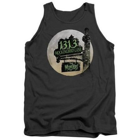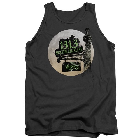 Trevco The Munsters-Moonlit Address Adult Tank Top, Charcoal - 2X