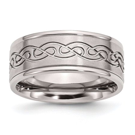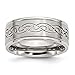 Stainless Steel Scroll Design 9mm Ridged Edge Chisel Wedding Band Ring 9.5