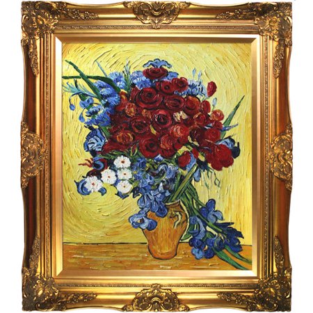 OVR3602 <br /> <b>Features</b> <br /> <ul> <li>Certificate of authenticity included</li> <li>Orientation: Vertical</li> <li>Design: Victorian</li> <li>Frame finish: Gold</li> <li>100% Handmade oil painting on artist grade canvas</li> <li>Framed paintings arrive ready to hang on wall</li> <li>Subject: Floral & Botanical</li> <li>Size: Medium 25"-32"</li> <li>Style (Old): Fine art/Traditional</li> <li>Color: Blue/Yellow/Red</li> <li>Artist: Vincent Van Gogh</li> <li>Region: Europe/Netherlands/France</li> <li>Primary Art Material: Canvas</li> </ul> <br /> <b>Dimensions</b> <br /> <ul> <li>Overall Height - Top to Bottom: 32"</li> <li>Overall Width - Side to Side: 28"</li> <li>Overall Depth - Front to Back: 2"</li> <li>Overall Product Weight: 10 lbs</li> </ul>