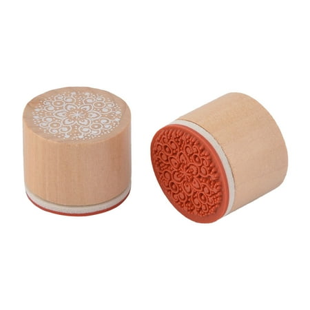 Home Wooden Flower Pattern DIY Scrapbook Signet Stamper stationery Beige 2 Pcs