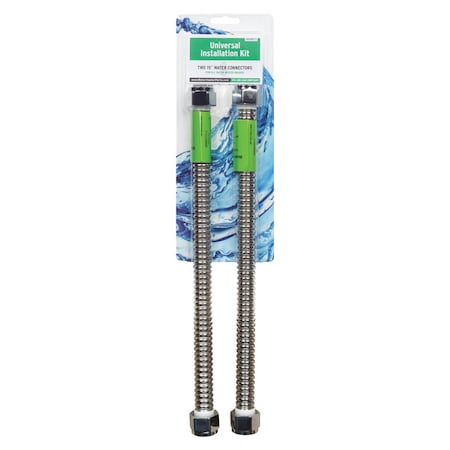 Contains two 15" flexible connectors and two 3/4" plasti-cert nipples to fit water holes in heater tank. 3/4" F.I.P.S. ends on flexible connectors complete hookup to water lines. No. 9000060: Size: 3/4" FIPS X 3/4" FIP X 15" L