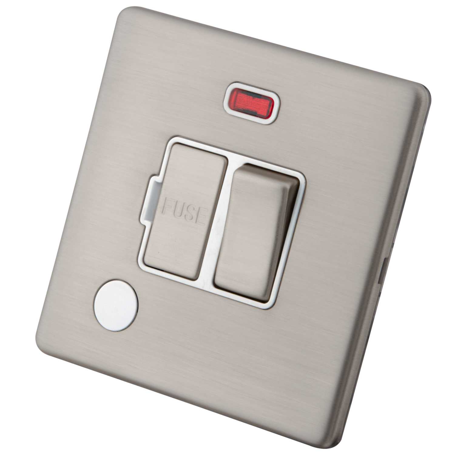 M2 13A Screwless Switched Spur Neon F/Outlet White Insert Brushed Stainless Steel (M2SLBS13SSUNFM) | CEF