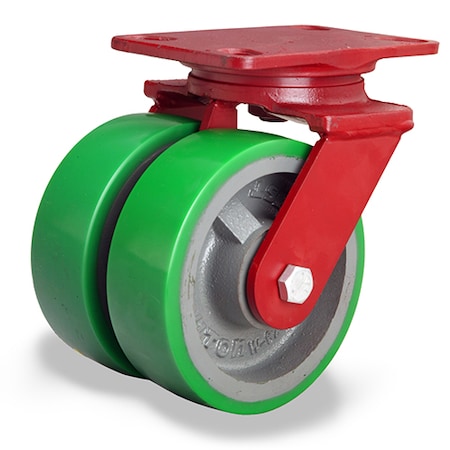 Heavy Service Dual-Wheel Swivel Caster, 6" x 2" Duralast(R) Polyurethane (95A) Wheels with 3/4" Precision Tapered Roller Bearing