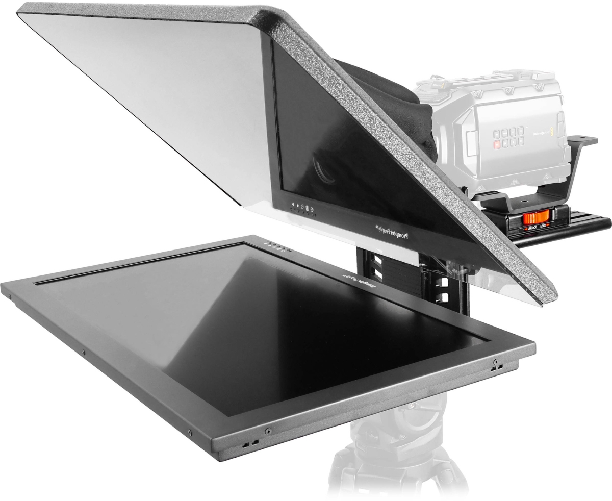 The Prompter People Proline Plus <b>PRO-24HB</b> 24" HB Teleprompter with 22.5" Reversing Monitor features a 22.5" 1000 cd/m² reversing monitor, 60/40 beamsplitter glass, and a 27' reading range. The teleprompter supports nearly any camcorder, ranging from MiniDV to ENG. The teleprompter comes with an aluminum extrusion frame, which enables mounting the camera to the prompter without requiring counterweights. Height and angle adjustments allow the 60/40 glass to be tuned to ensure that the camera is centered and suited to the presenter's viewing angle and can be folded down for transport and storage. The removable camera rail makes for easy storage. You can mount the camera to the prompter and mount that setup to your tripod in a traditional manner, or with an optional FreeStanding kit, you can mount your camera to your tripod and separately mount the prompter to a stand in front of your camera.</p><p>Flip-Q Pro software, with a dual-screen scrolling engine, reverses the secondary PC or Mac laptop output without reversing the operator's display. This enables the use of less expensive non-reversing VGA displays without sacrificing the functionality or performance. It features an RTF text editor, and allows you to import RTF and TXT files. Additionally, Flip-Q Pro software offers color background, color fonts, preset font size, color, style, black and white fonts, user selectable cue points, run lists, run from selected cursor and selectable cue marker. The software comes on a USB dongle so that it can be used on multiple computers. Just plug the dongle into the computer you want to use at a given time.</p>