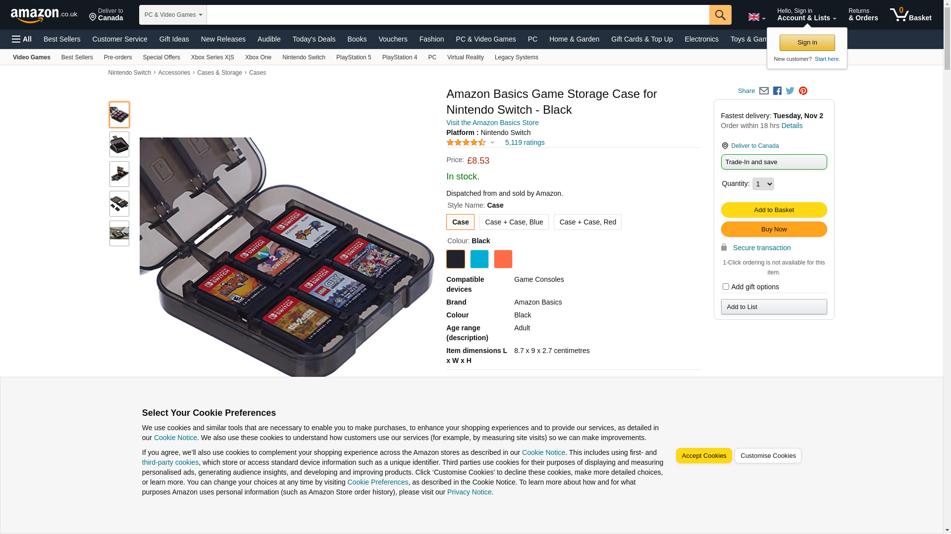 - Game storage case for Nintendo Switch games; stylish design in Black color