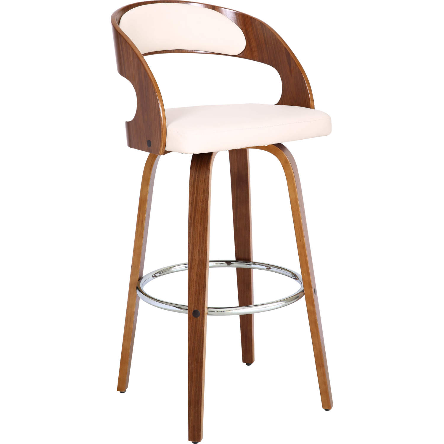 Armen Living Shelly Rotating Bar Stool Cream Faux Leather/Walnut Wood Bar High Chair 29.9 inches (76 cm)