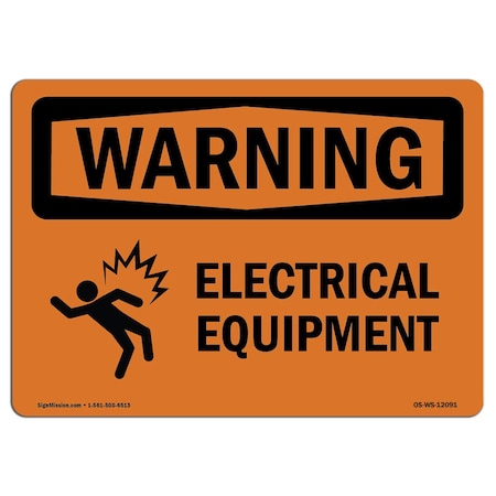 OSHA WARNING Sign, Electrical Equipment W/ Symbol, 24in X 18in Rigid Plastic