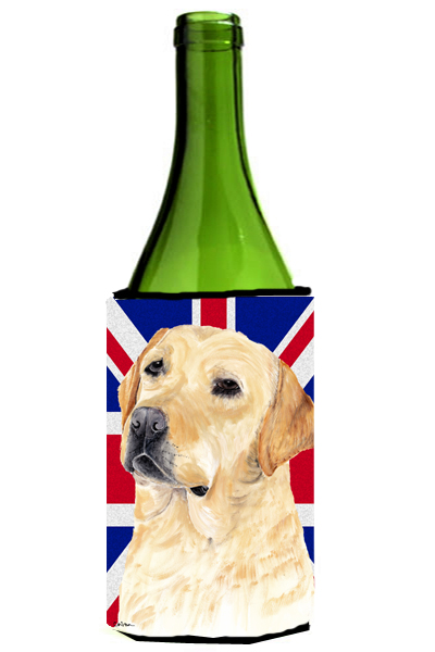 Carolines Treasures SC9833LITERK Labrador With English Union Jack British Flag Wine bottle sleeve Hugger - 24 Oz.