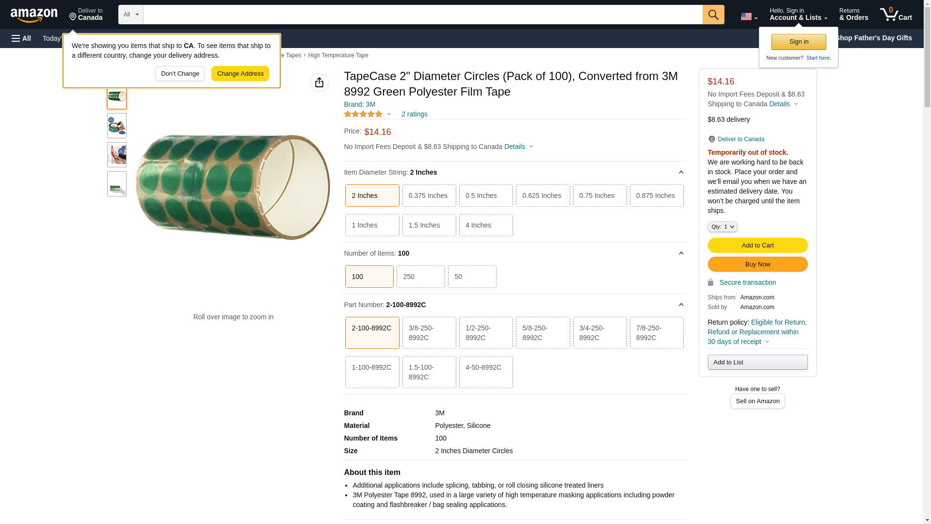 TapeCase 2" Diameter Circles (Pack of 100), Converted from 3M 8992 Green Polyester Film Tape