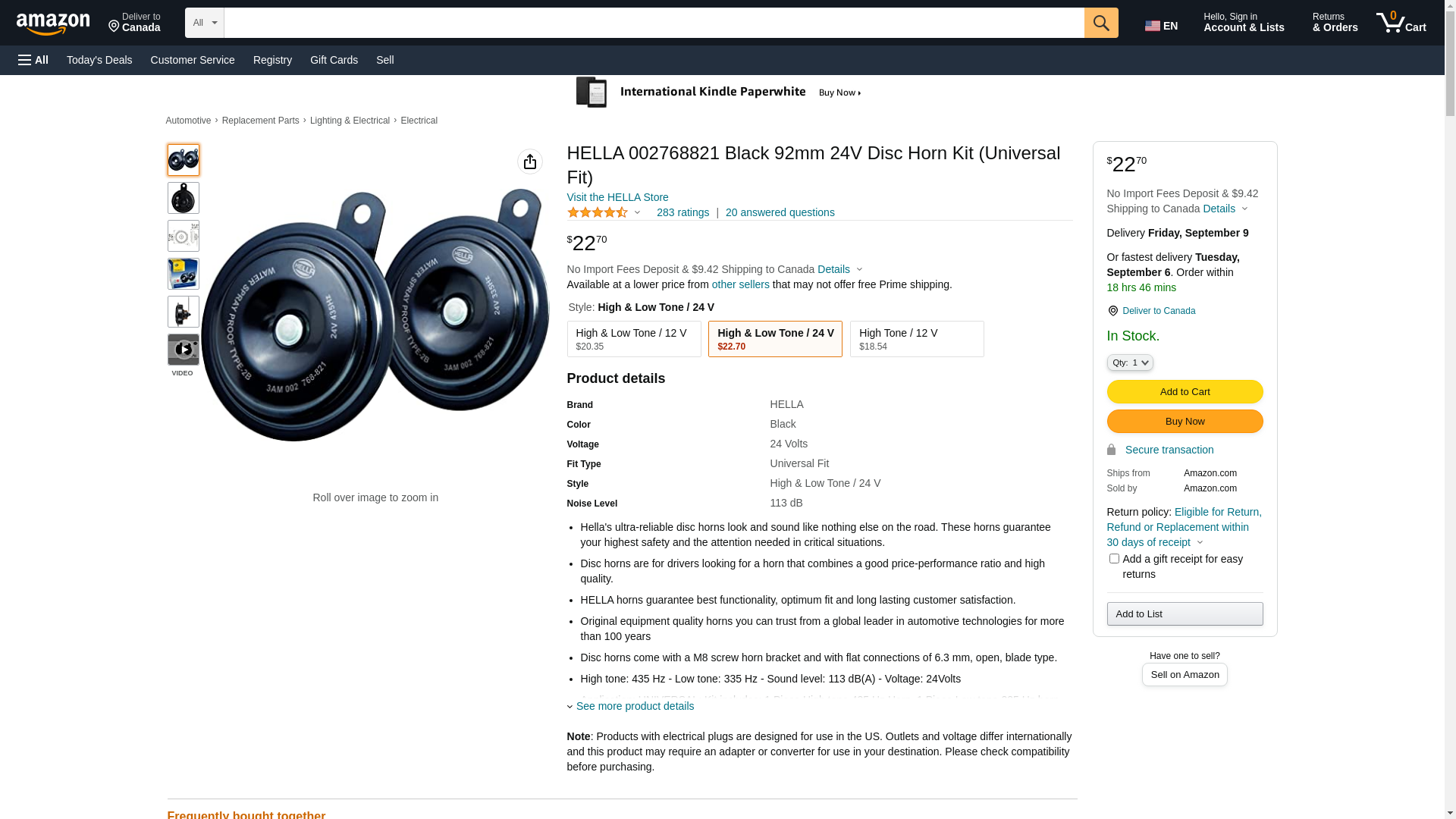 - Hella 002768821 Horn Kit Bx Blk Disc 92Mm 24V Univ