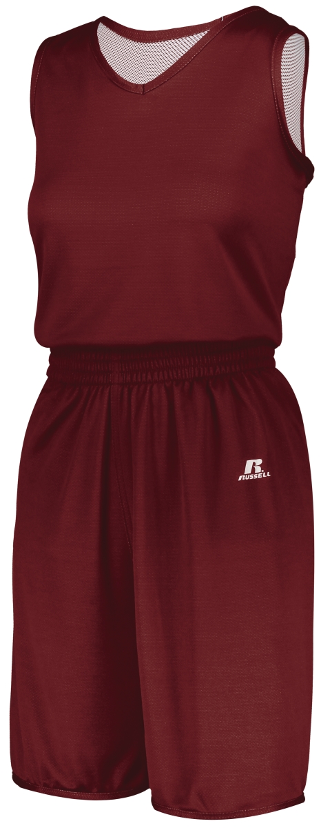 Russell 5R8DLX.CWH.M Ladies Undivided Solid Single Ply Reversible Shorts, Cardinal & White - Medium